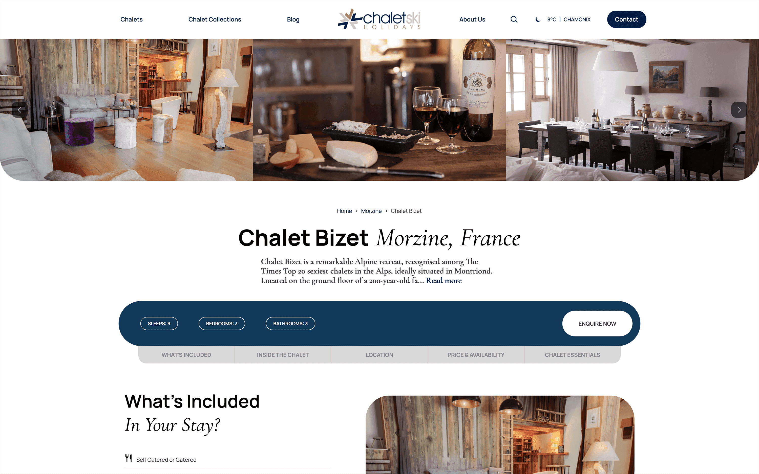 A WordPress platform with custom search, pricing infrastructure, and an enquiry workflow tailored for high-value chalet bookings.