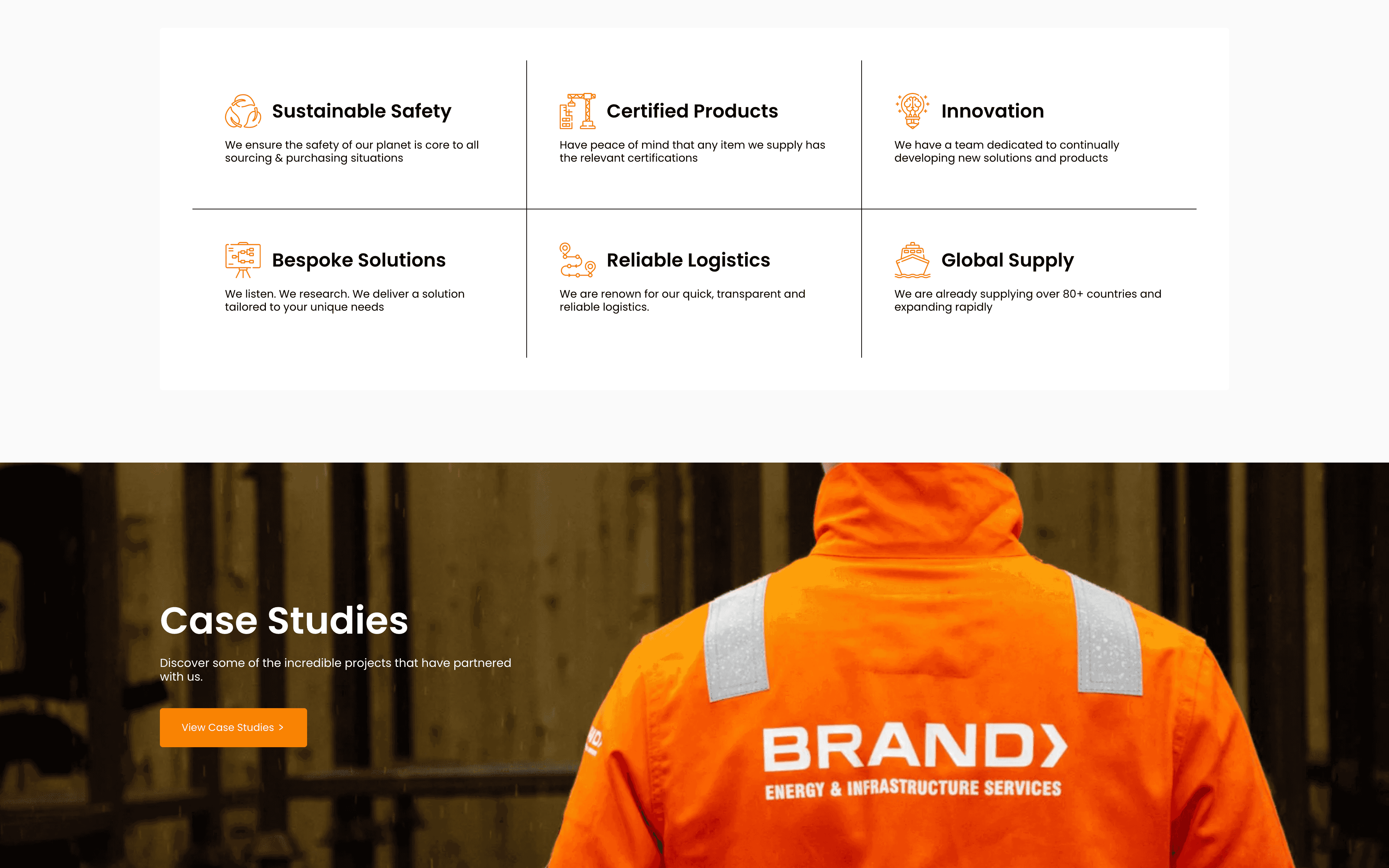 - Implemented the theme, navigation, and page layouts to highlight sectors, solutions, and trust signals.