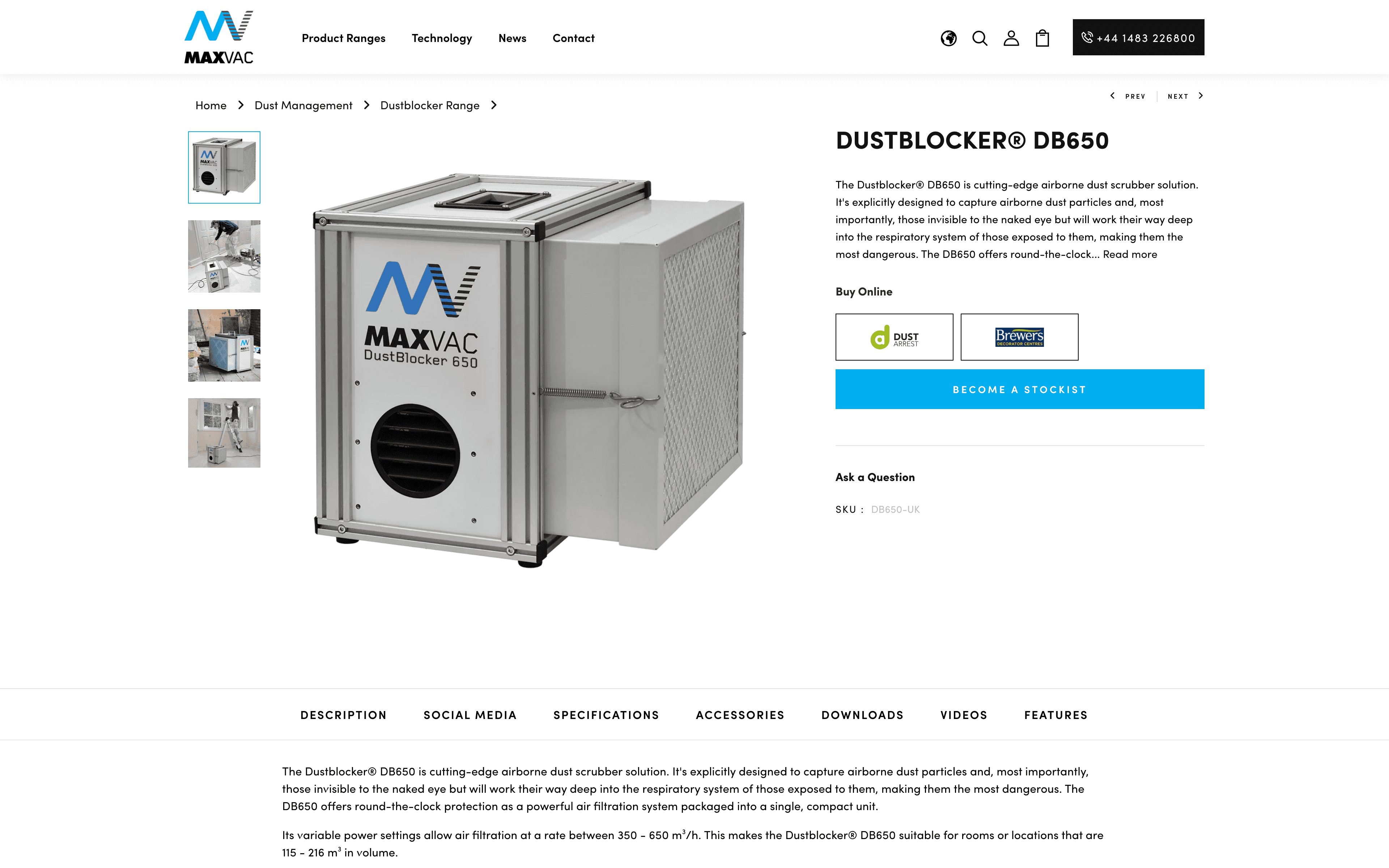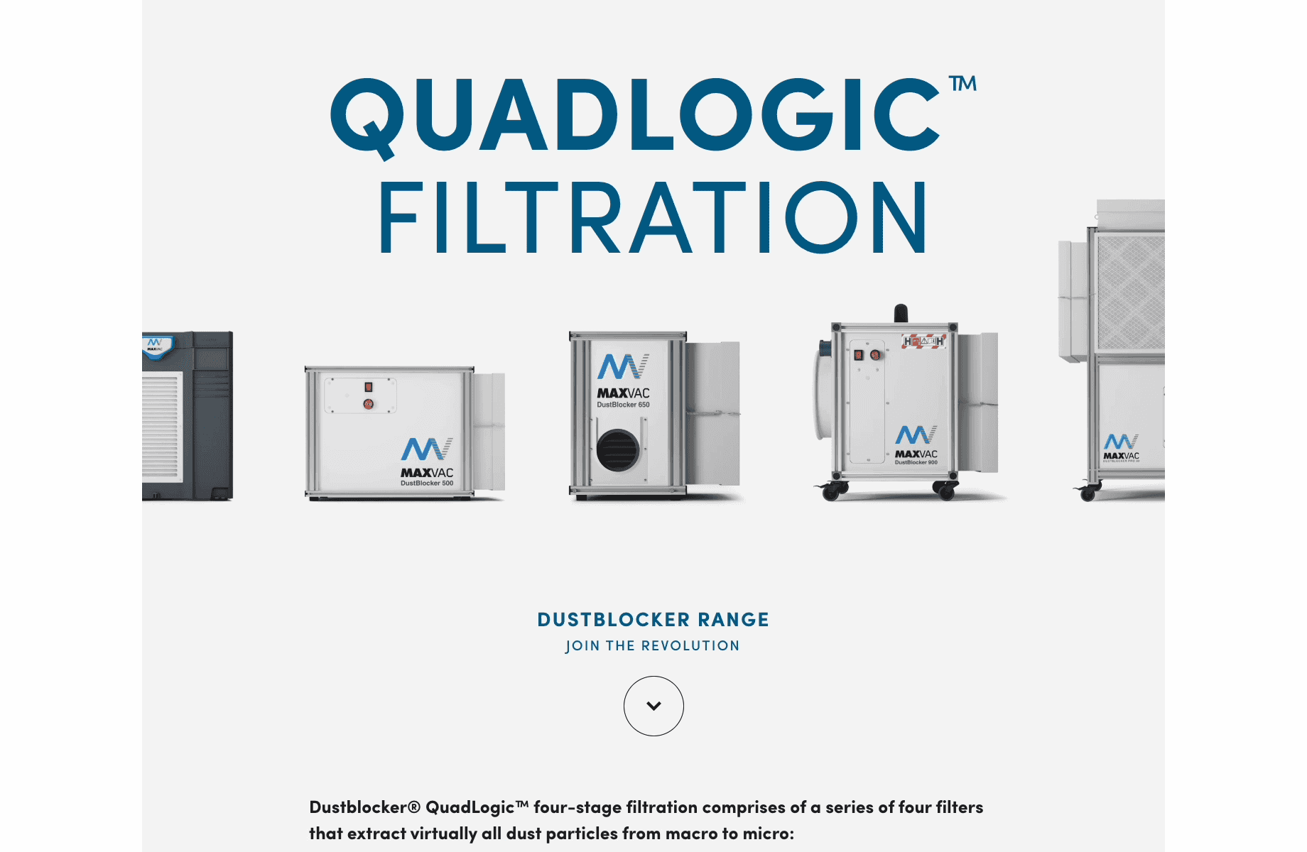 - Delivered multiple high-impact landing pages and campaign sections, including a modern launch experience for the Dust Blocker range.